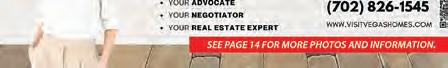 This beautiful single story home in The Lakes is situated at the end of a quiet cul-de-sac, oversized, pie-shaped lot. This is a well established neighborhood. One story with just over 1700 SF of signi cant upgrades. 3 BRs plus permitted game room/o ce or den addition with double door entry. The kitchen has beautiful white hard surface counters and breakfast bar, with all stainless steel appliances included. The family room with vaulted ceilings overlooks the backyard with sliding door access to the covered patio. Extensive hard surface ooring, both ceramic and laminate. The Lakes community features waterscaping, waterfalls, greenbelts with easy access to I-215, shopping, the Desert Inn arterial and Las Vegas Strip. This one will go quickly! Priced to sell at $475,000. MLS #2713435 CALL TODAY ➠ 702-236-3800!