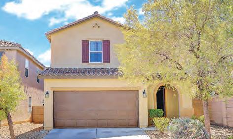 SOUTHWEST – Over 2,000 SF home with 3 bedrooms, 2.5 bathrooms and a 2-car garage. Upgrades include laminate hardwood oors, granite countertops, maple cabinets, Boss Security Screens and much more. Open oorplan ows downstairs, while upstairs o ers a spacious loft, primary suite, and two secondary bedrooms. The backyard is a true desert oasis with a large covered patio, mature landscaping, and lush arti cial turf. Conveniently located near top restaurants, shopping, and the expanding Blue Diamond corridor, with quick access to I-15 for an easy commute across the valley. A must-see home! Call for price.
