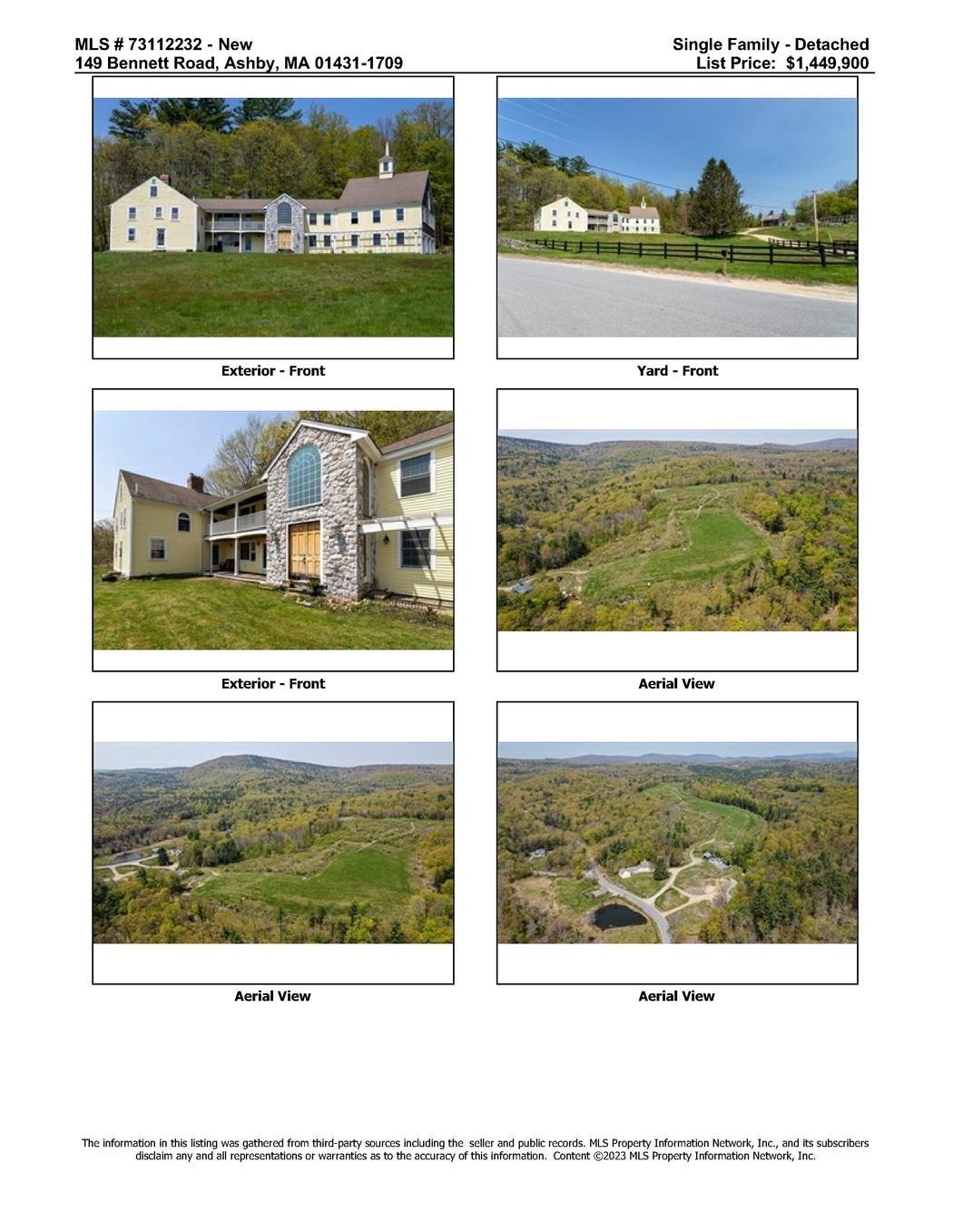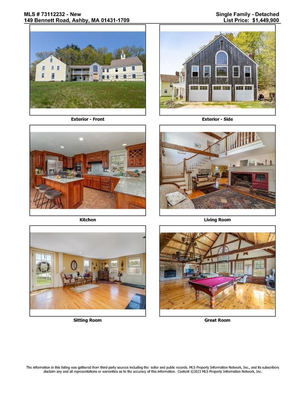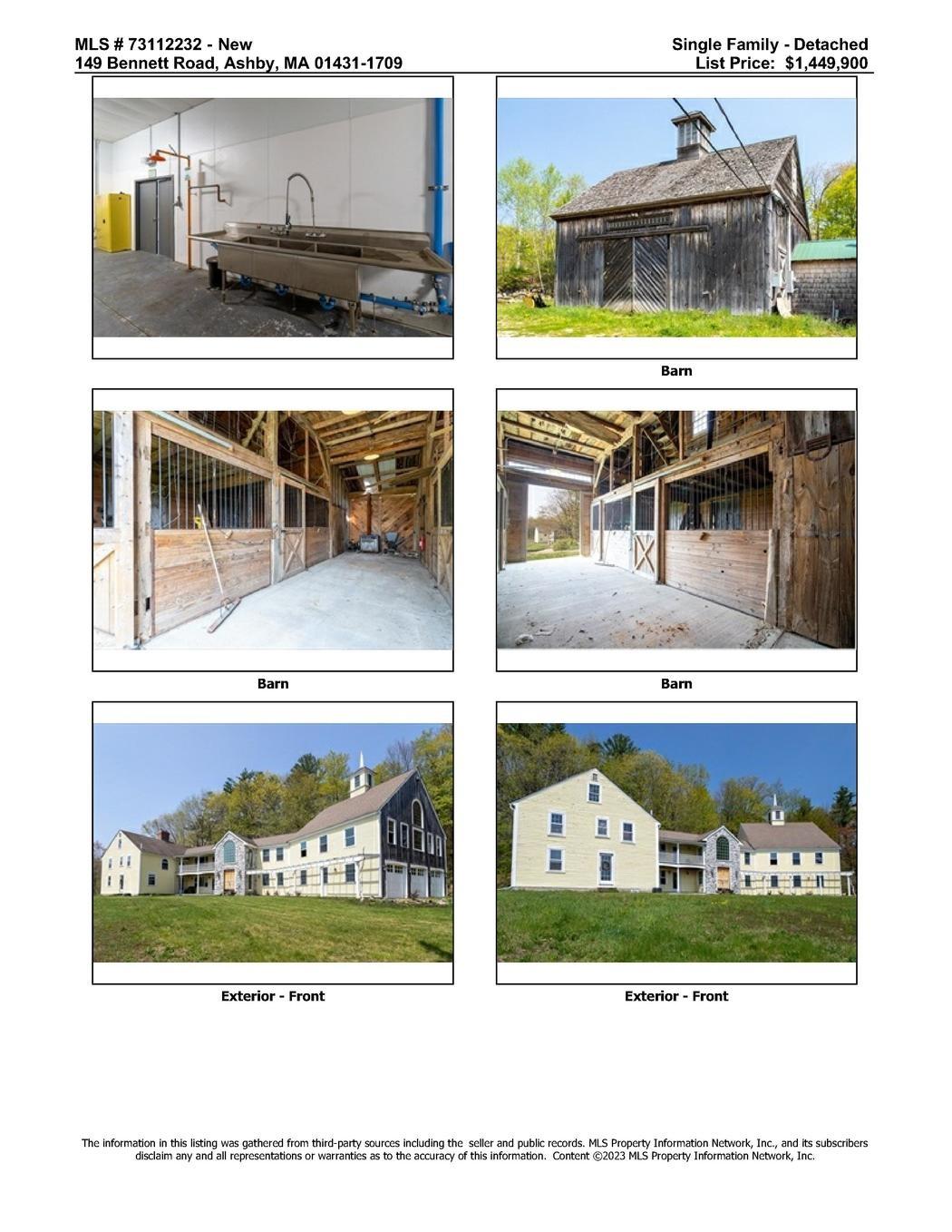 Area Amenities: Walk/Jog Trails, Conservation Area, House of Worship, Public School Basement: Yes Full, Interior Access, Unfinished Basement Beach: No Construction: Frame Electric: Circuit Breakers, 200 Amps Exterior: Clapboard, Wood, Vinyl Exterior Features: Deck, Gutters, Storage Shed, Garden Area, Horses Permitted Flooring: Wood, Tile, Laminate, Hardwood Foundation Size: unmeasured Foundation Description: Poured Concrete, Fieldstone Hot Water: Oil, Tank Insulation: Unknown Interior Features: Central Vacuum, Cable Available, Internet Available - Broadband Lot Description: Wooded, Easements, Cleared, Farmland, Sloping, Scenic View(s) Road Type: Public, Paved Roof Material: Asphalt/Fiberglass Shingles Sewer Utilities: Private Sewerage - Title 5: Pass Utility Connections: for Electric Range, for Electric Oven, for Electric Dryer, Washer Hookup Water Utilities: Private Water Waterfront: No Water View: No OtherPropertyInfo Adult Community: No Disclosure Declaration: No Exclusions: Land with garage on other side of Bennet Rd is not included in sale. Green Certified: No Home Own Assn: No Lead Paint: Unknown UFFI: Unknown Warranty Features: No Year Built: 1750 Source: Public Record Year Built Description: Unknown/Mixed Year Round: Yes Short Sale w/Lndr. App. Req: No Lender Owned: No TaxInformation Pin #: M:001.0 B:0013 L:0000.0 Assessed: $824,000 Tax: $13,530 Tax Year: 2023 Book: 79713 Page: 565 Cert: Zoning Code: RA Map: 001 Block: 0013 Lot: Compensation Sub-Agent: Not Offered Buyer Agent: 2.5% Facilitator: 2.5% Compensation Based On: Net Sale Price FirmRemarks See all attached documents, including Submitting a Complete Offer. 4 Bedroom septic design per Title 5. All measurements are approximate. Buyer to perform all necessary due diligence to confirm accuracy. MarketInformation Listing Date: 5/16/2023 Listing Market Time: MLS# has been on for 1 day(s) Days on Market: Property has been on the market for a total of 1 day(s) Office Market Time: Office has listed this property