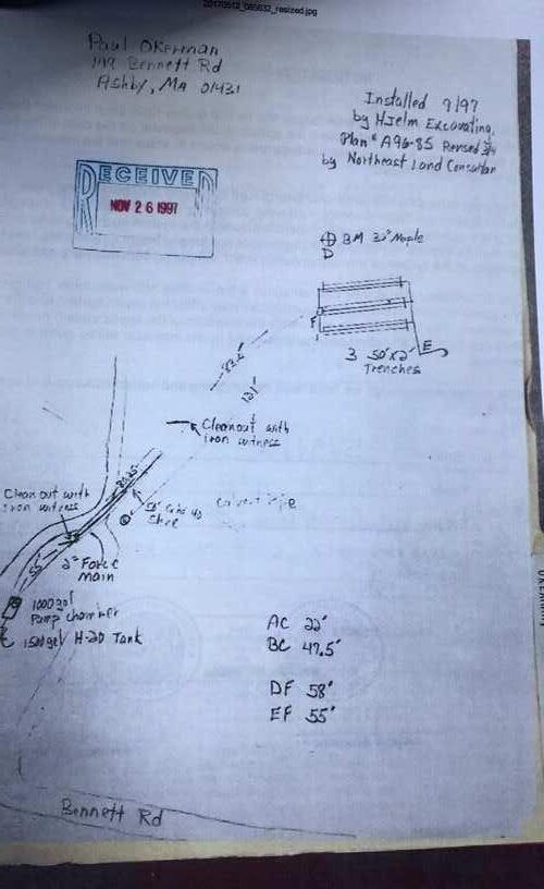 Ashby MA 01431-1 02/14/2022 5.3’ 12/7/96 Soil testing info dated 11/12/96 on design plan dated 12/7/96 lists groundwater at 5.3’.