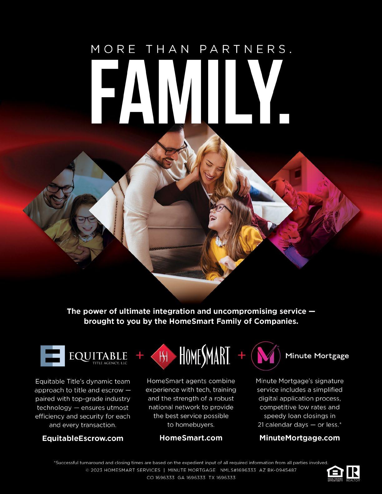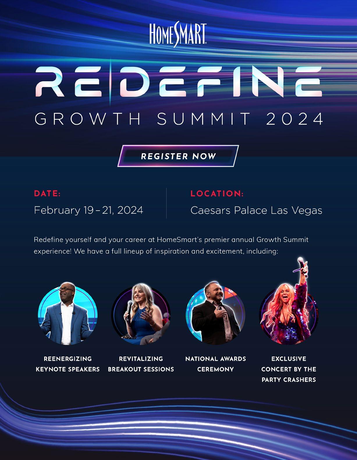 Invest in yourself by attending classes, create a solid plan for engaging with your sphere of influence, extend your reach by getting out there and networking, and take yourself out of your comfort zone by setting some ambitious goals for the new year. And of course, don’t forget the power of collaborating with our national partners. This edition of our Growth Summit Partner Magazine features products and services every HomeSmart agent can leverage to redefine success. Taking advantage of this resource can take you to the next level, so set yourself up for a brighter future today!