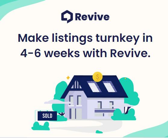 Revive helps agents with pre-sale renovations to maximize listing price and decrease DOM.