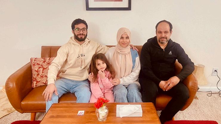 and her family fled Syria to Egypt in 2013, where they lived for several years. Finally, in 2016, she received the news that their application to enter the United States was accepted and that they could begin interviewing. Unfortunately, in 2017, their case was stalled due to restrictions set by the administration. While waiting on her application, Reham married Mohammad Syed and had a beautiful baby girl before finally hearing back from the United States that their case would be reopened in 2023. They arrived to Washington DC in October 2024 and reunited with her brother. After staying in a hotel for a month and a half, they moved into their new apartment that HNB set up.