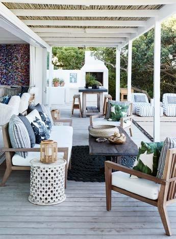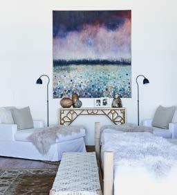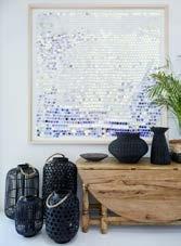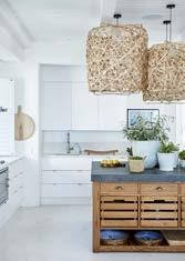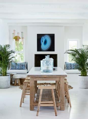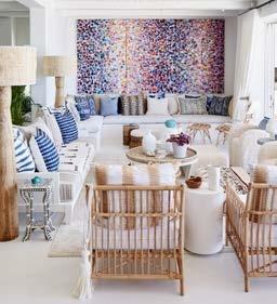 scheme features wood, raffia and basketry prominently Kim and Anthea were each other’s monitors here, and put each other right if either strayed slightly off, or too far into beach-house territory, always pulling it back to the boho brief, a complementary partnership that kept the house on point ‘We were each other’s counterpoints – I sometimes tempered Anthea’s wilder ideas but she also stretched my creativity, as this house is non-conformist in many ways,’ comments Kim. Her approach that a cocooning base needs to balance high drama was perfectly in sync with the family’s need for easy elegance – playful, but perfectly appointed www.bureaux.co.za