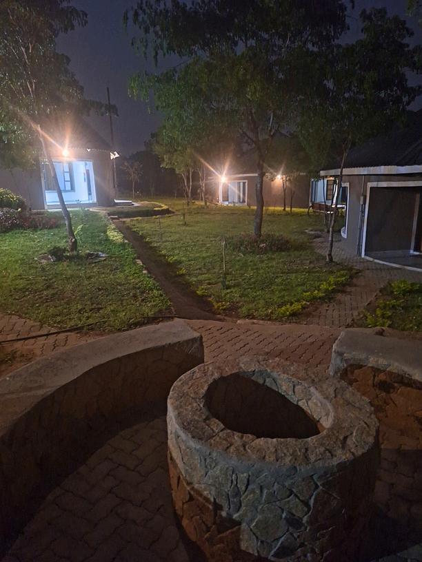 The resort runs entirely on solar power and borehole water, ensuring an eco-friendly stay. The beautifully landscaped gardens and indigenous Msasa trees provide an idyllic setting, while the outdoor entertainment areas and firepits invite guests to unwind under the stars.