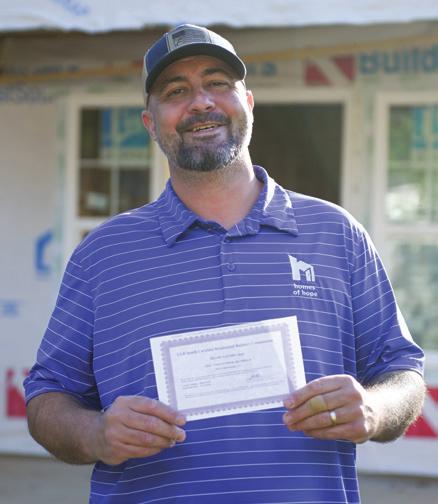 This year, MWD Project Coordinator Eric Archibald achieved a significant milestone by earning his builder’s license. This advancement allows Homes of Hope to complete HOPE Houses, without outside contractors and enhances the Men’s Workforce Development training program. Our MWD interns gain direct, hands-on experience in every stage of constructing HOPE Houses under the guidance of a licensed professional—resulting in stronger training for our men and more highquality HOPE Houses for families in the lowest income bracket.
