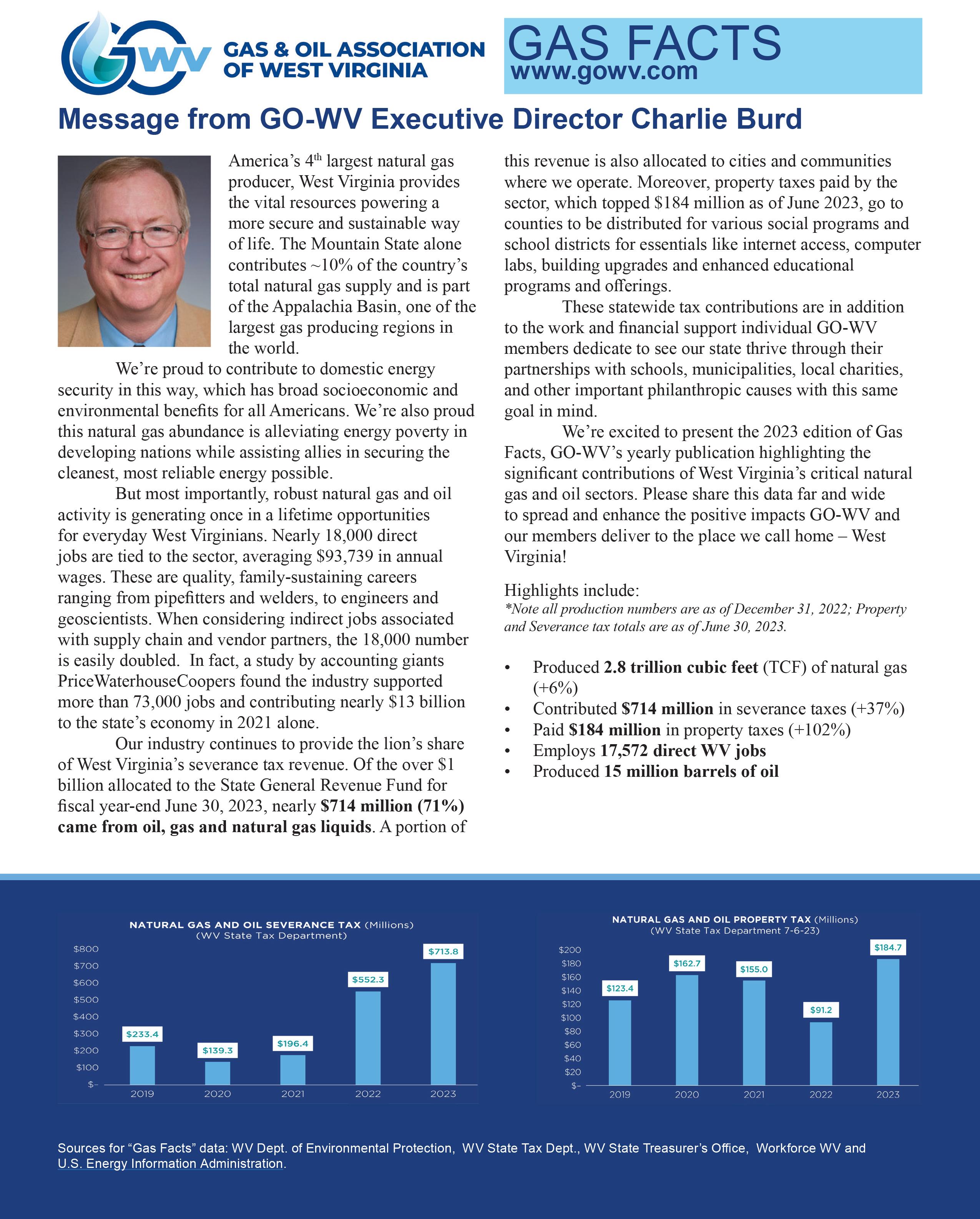Jeff Isner has been elected as 2023-2024 President of the Gas and Oil Association of WV, Inc. (GO-WV). He will be joined by Vice President Jim Crews, Secretary Jason Harshbarger, Treasurer Kelly Moss and Immediate Past President Maribeth Anderson.