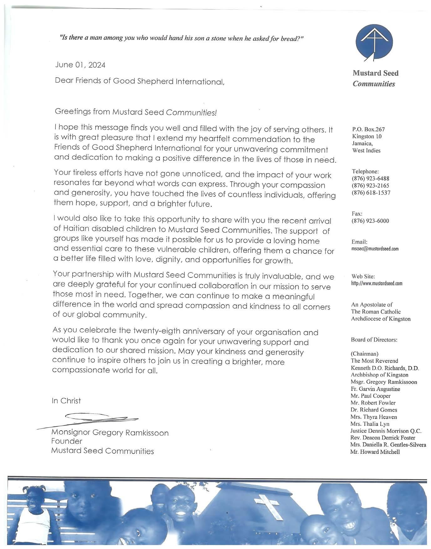 For over 28 years, Friends of Good Shepherd International has been a beacon of hope, not just in Jamaica but throughout the Caribbean and the United States. Our support extends to various organizations, including the Good Shepherd Foundation of Montego Bay, Good ShepherdFoundationMedicalCenter,Villageof Hope (formerly Hope Hospice), Mustard Seed Communities, and numerous educational programs. The impact of our contributions reaches far and wide, touching lives in Haiti, Trinidad,andbeyond.