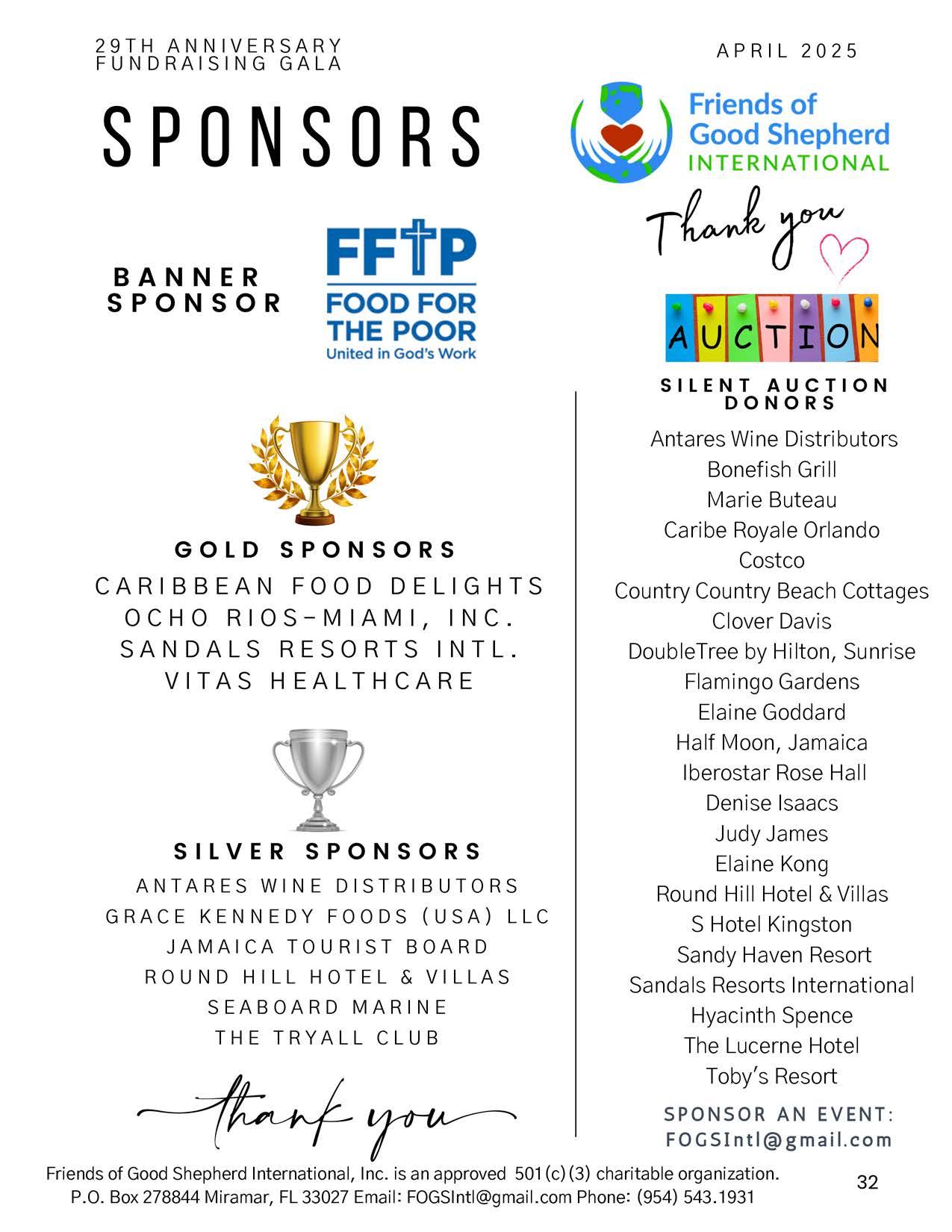 Celebrating 29 years of compassion and service, Friends of Good Shepherd International, Inc. continues its mission to uplift the lives of the most vulnerable through education, healthcare, and community support. This special evening unites our dedicated supporters, donors, and partners in a shared commitment to creating lasting change. Your generosity fuels our efforts, ensuring brighter futures for those in need. Thank you for being part of our journey—together, we make a difference!