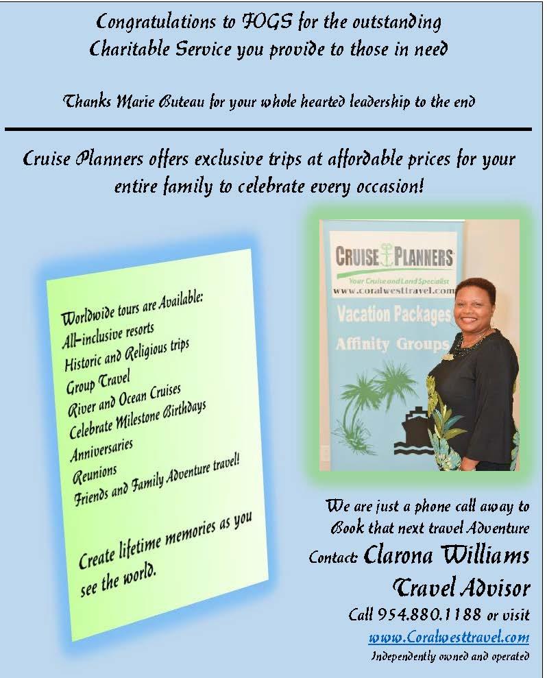 Due to her mentoring and visionary leadership,Iamproudtoinformyou that she has left the organization in capable hands. We are excited to haveMr.Ivan(Andrew)Foreman,as the new President. Mr. Foreman brings to the organization a level of professionalism and a record of servicethatwillundoubtedlyhelpto propelFOGStoadmirablelevels.