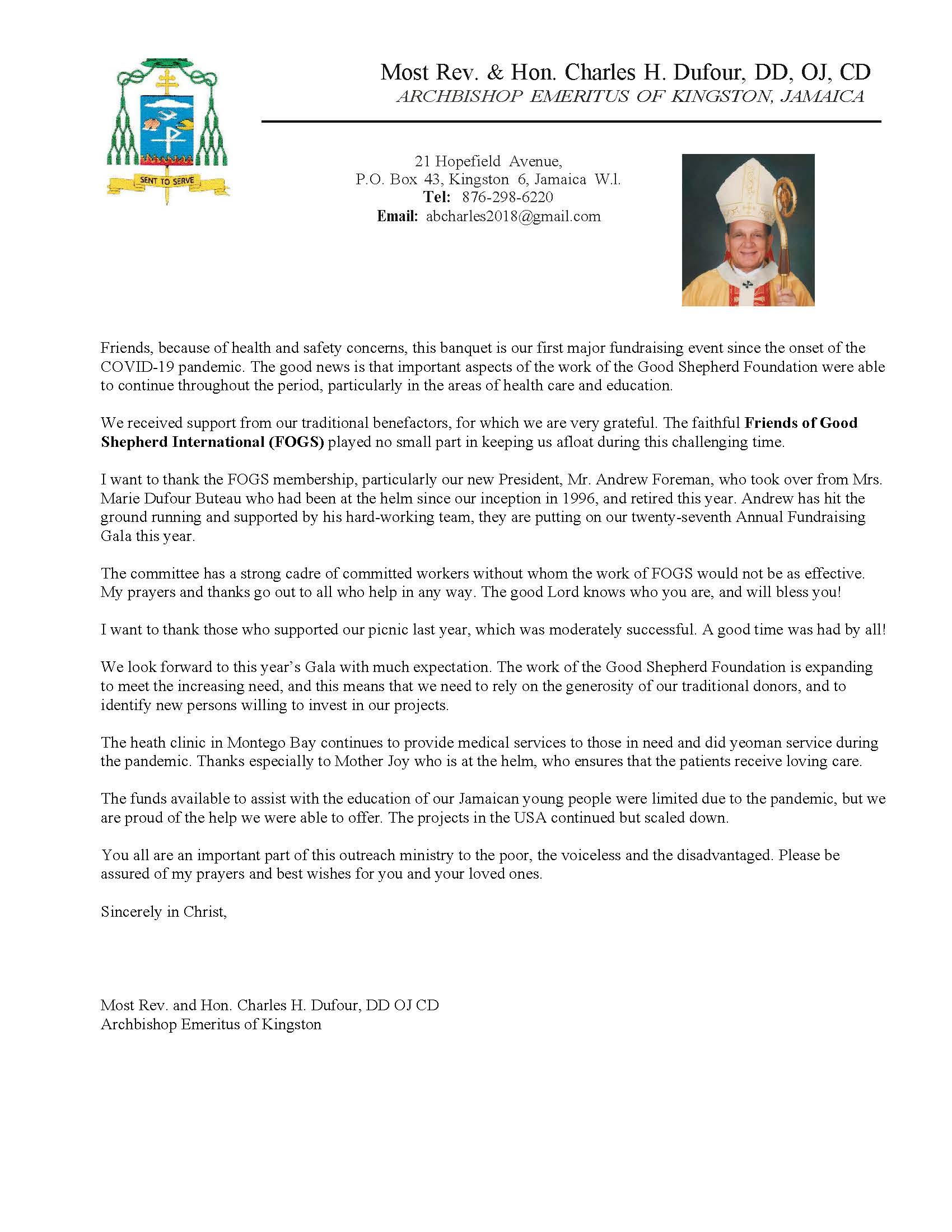 In appreciation for his support over the years to Friends of Good Shepherd International as well as the many projects he helped Archbishop Charles withtobecomeareality.WalkgoodinHeaven.