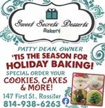E Bake Up a Sweet Treat for Any Festive Holiday B&H TIRE SERVICE 3959 River Rd., Worthville Take Rt. 36 North to Coolspring, turn 1st left on Worthville-Coolspring Rd. ALL BRAND TIRES NEW • PASSENGER • FARM • TRUCK Auto Repair, Tire Accessories, Batteries, Exhaust, Balancing, Shocks, Brake Linings, Oil Change, State Inspection, Four Wheel Alignment 849-5460 Open Monday - Friday 8 to 5; Saturday 8 to noon QUALITY & EXCELLENCE SINCE 1970 UPS SHIP & DROP OFF SERVICE 103 N. Gilpin St., Suite 304 (814) 938-3715 Business Accounting Tax & Payroll Services “Making the numbers work in your favor” The Area’s Most Experienced Alignment shop! 939-7660 STATE NSPECTION Mon.-Fri. 8:30-5 Sat. 8:30-12 Locally Owned and Operated CallBrian Horner It’s “Webate” Season! E. F. Check out the website @ hpstire.com/coupons Just off Indiana St., Punxsutawney behind Mahoning Valley Milling Co.