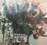 Downtown parking meters then and now: left, Garden Club scrapbook photo of meter urn with petunias from 1958-1962; right, meter urn with petunias 2021. GC began placing parking meter urns planted with flowers in 1958. (submitted photo)