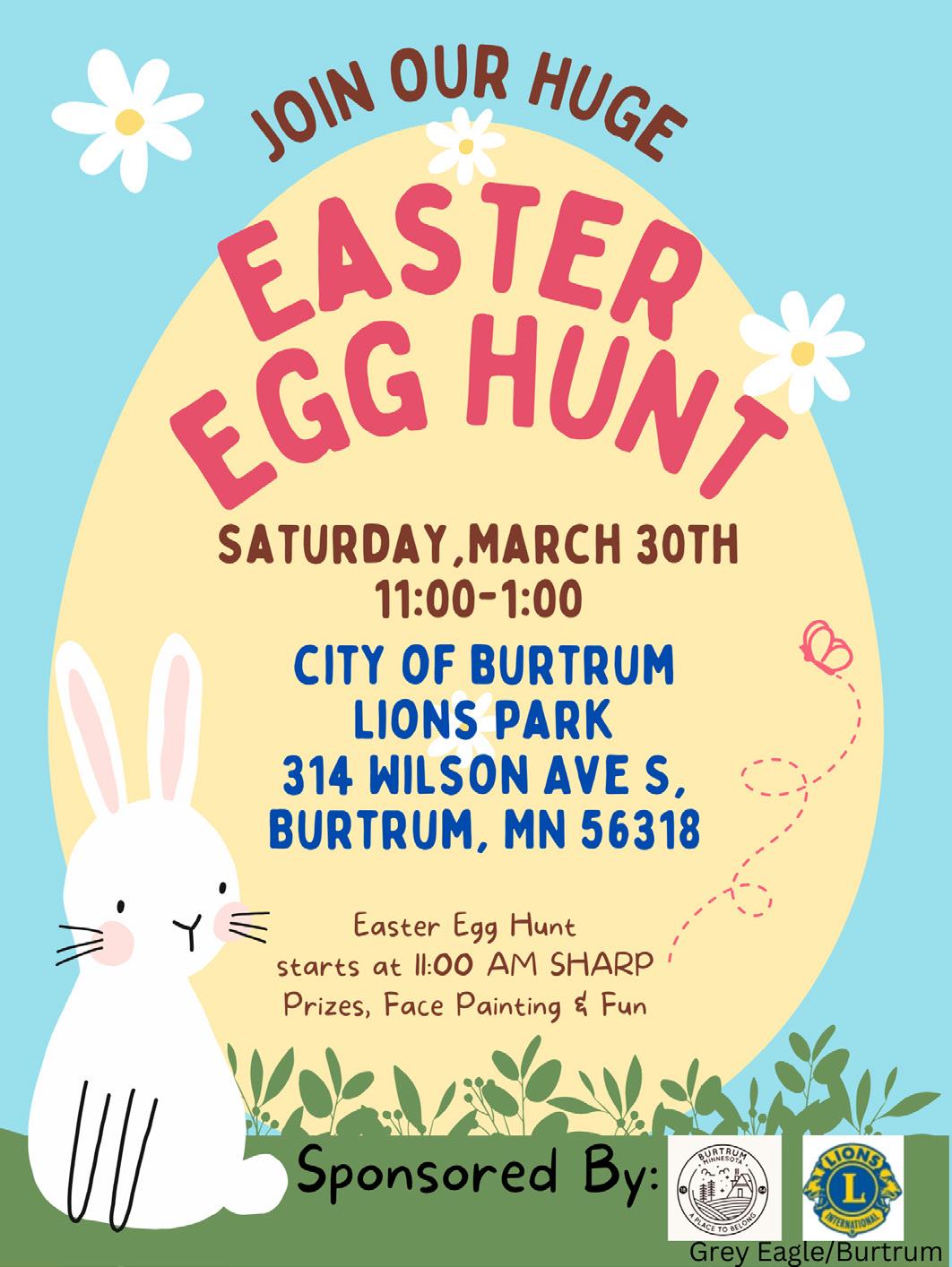 • Easter Egg Hunt at 11 a.m. at the Burtrum City Lions Park. See ad on page 4.
