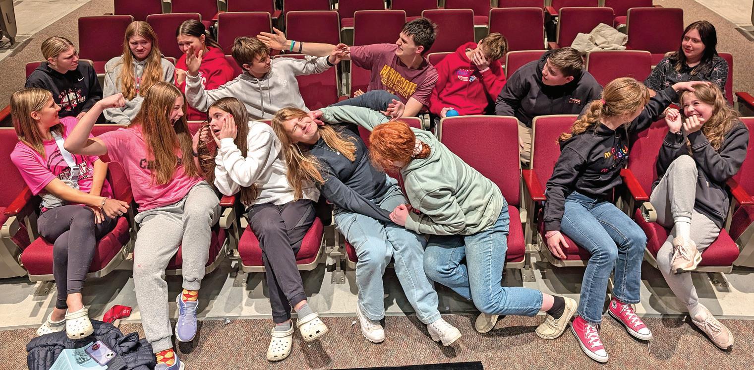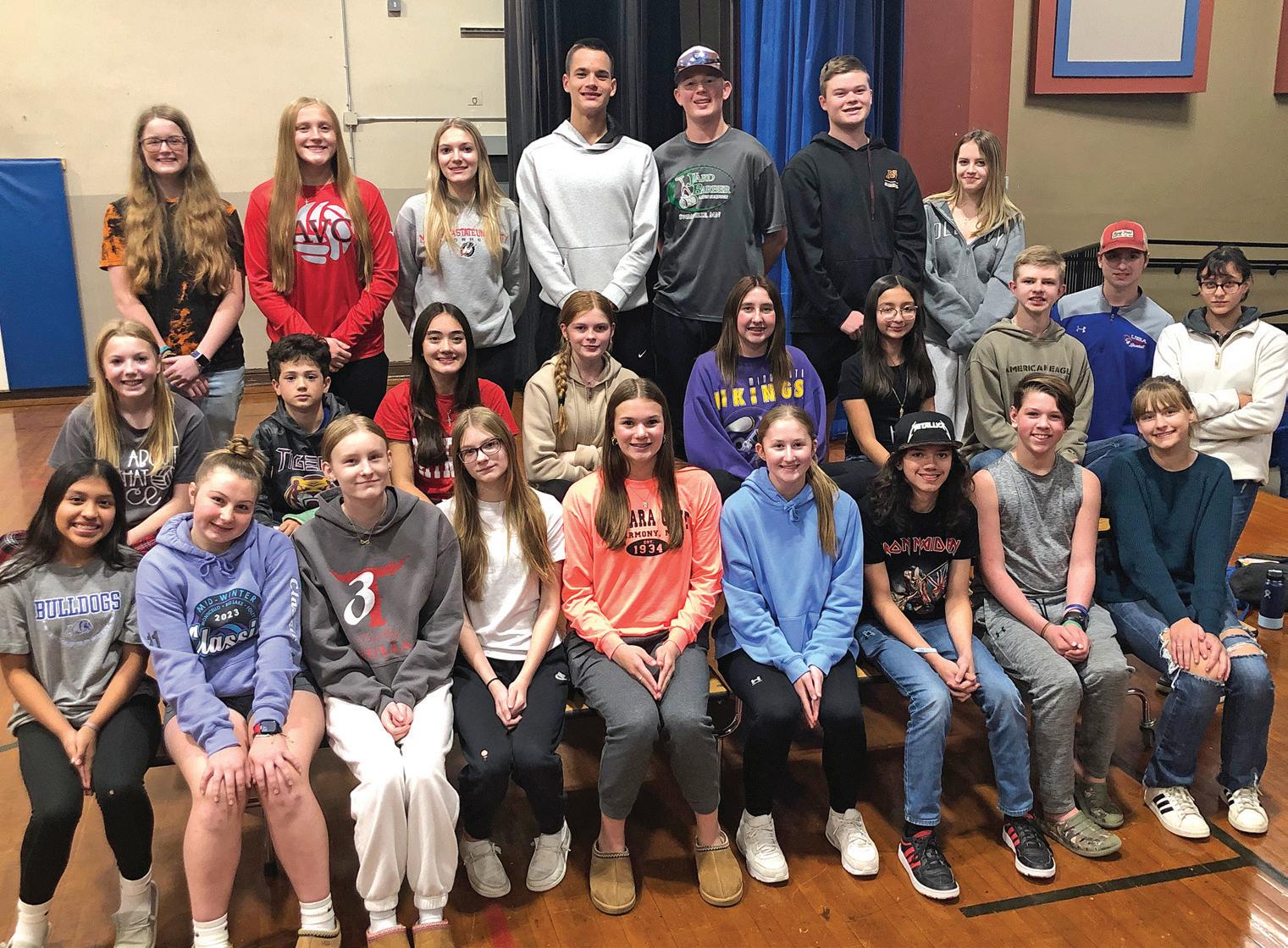 Cast includes: (front from left) Addisyn Hovland, Genevieve Mrozek, Hailie Luedtke, Evelynn Aleckson, Lucylee Aleckson, Abigail Carson, Addie Scepaniak; (back) Raven Nienaber, Bianca Mrozek, Aubree Roerick, Trygg Aleckson, Eli Roerick, Jack Jensen, Vance Benson, and Natalya Goulet.