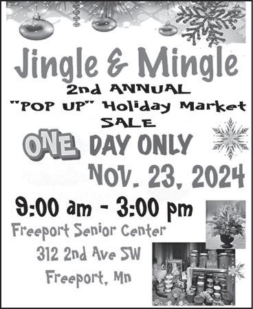 • Jingle & Mingle 2nd Annual Pop Up Holiday Sale from 9 a.m-3 p.m. at the Freeport Senior Center. See ad on page 6.