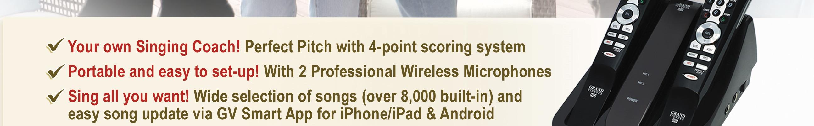 The Grand Videoke karaoke system has over 8,000 built-in karaoke songs. Sing all you want from a wide repertoire of pop to classic songs and all-time favorites! Song update is a breeze and you can have full control of your Grand Videoke system with the GV Smart App for your iPhone/iPad or Android device.
