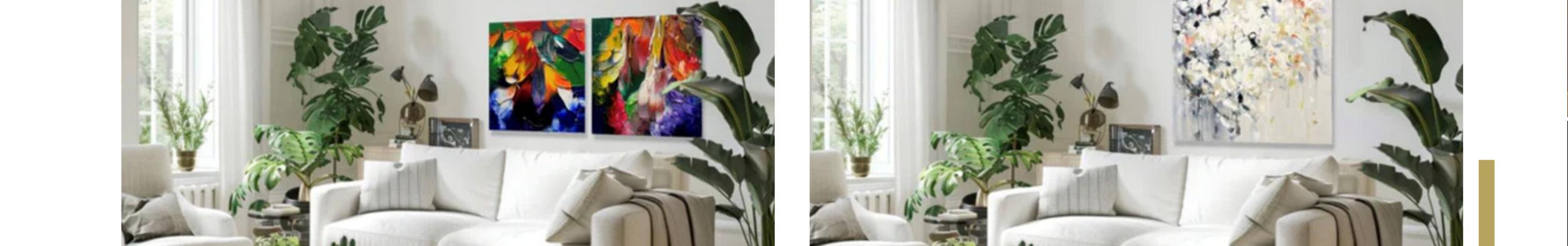 Imagine walking through the doors of a beautiful, modern home into a stunning, bright white entrance hall where a gorgeous, oversized art piece is on display as a bold, statement making welcome into the home. Inspired by a large 48” x 72” art piece, this design concept does just that!