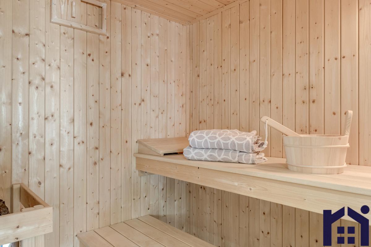 An internal hallway leads to a shower room with fully tiled elevations and flooring, wc, wash hand basin, electric shower in cubicle and ladder heated towel rail. Further along is the fully operational sauna and boot room with ceramic sink and space, power & plumbing for additional appliances.