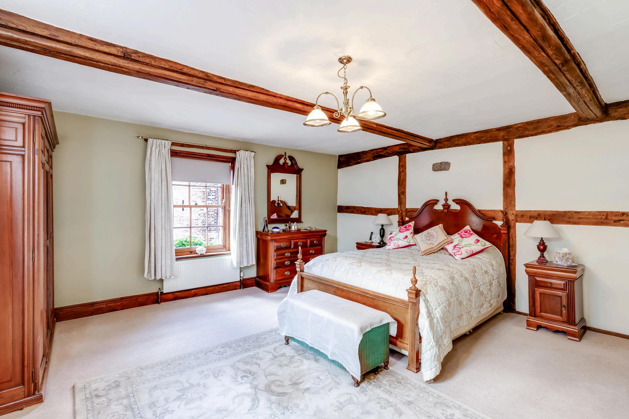 A simply stunning Grade II listed farmhouse with the oldest parts dating back to the early 1600s, offering 3,000 square feet of delightful accommodation and landscaped gardens There are many period features including exposed beams and original wattle and daub walls. One of only five properties in this gated community, tucked away yet in easy reach of town centre amenities, schools and primary transport routes.