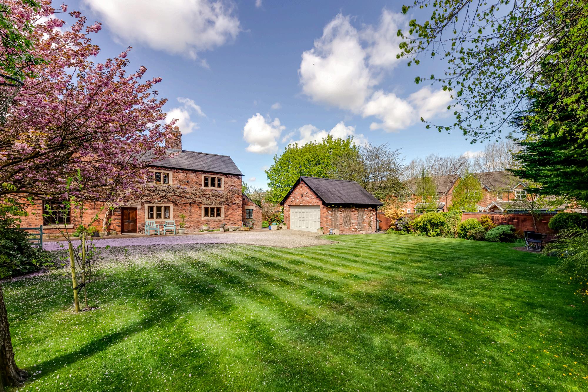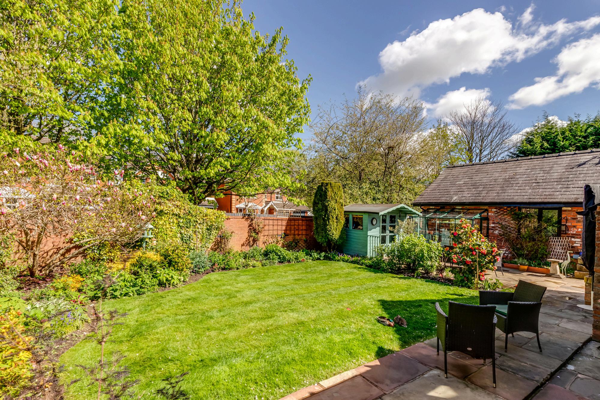 The side garden has raised beds for herbs and edible produce, whilst to the front the formal gardens are surrounded by mature planting including flowering cherry, pear, apple and damson, all set off by a waterfall tumbling down the rockery.