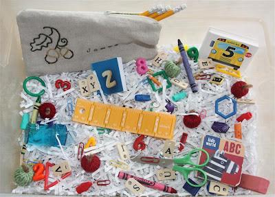 Explore the back-to-school season with this school supply themed sensory tub that will entertain your little one as well as strengthen motor skills!