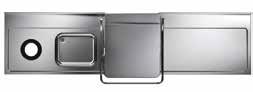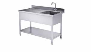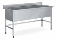 Spoeltafels vervaardigd van rvs frame = rvs kokerprofiel 1 of 2 spoelbakken spoelwaterkering opstaande rand rvs stelpoten en bodemschap optioneel: mengkraan, standpijp