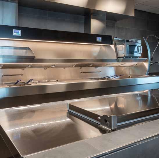 Dankzij de uitgekiende technologie heeft de Fry Logic een rendement van 94%, een lager stroomverbruik dan conventionele ketels en tot wel 30% minder vetgebruik. De bakwand is volledig op maat gemaakt in onze fabriek en uitgerust met een vetfilterinstallatie. Dat maakt het filteren van vet een fluitje van een cent. Na het filteren kan het vet een voudig weer naar de ketels worden gepompt. Dit in combinatie met de geurfilterkast – waardoor stankoverlast wordt tegengegaan – maakt deze Fry Logic helemaal compleet.