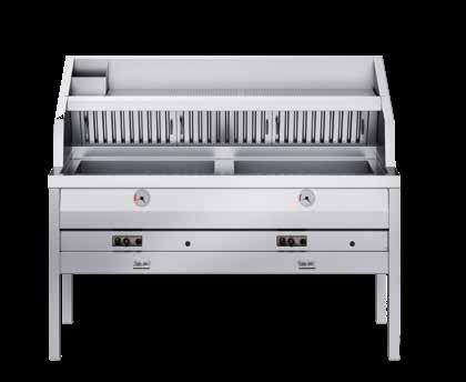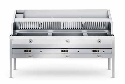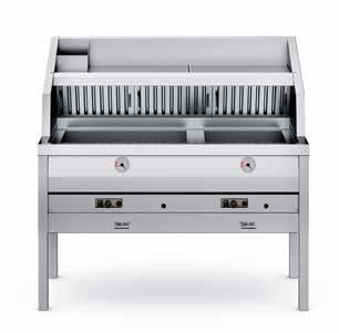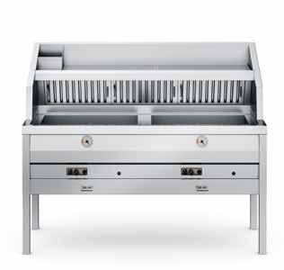 De elektrische uitvoering beschikt over een uniek kantelsysteem, waarbij het element zich vast klemt en de visbakoven daardoor makkelijk schoon te maken is.