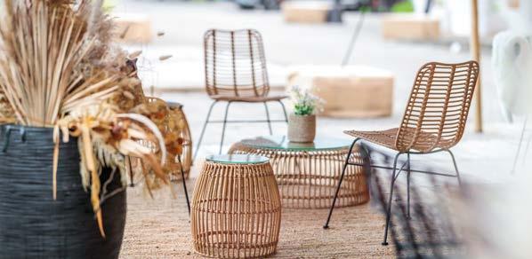 Haal het vakantiegevoel naar het terras met rieten details en gevlochten stoelen