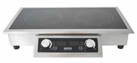 De Inbouw Inductiekookplaat 2 zones heeft een roestvrijstalen behuizing. De kookzones zijn afzonderlijk bestuurbaar en hebben een temperatuurbereik van 60 tot 240°C. Het bedieningspaneel kan eventueel worden losgeschroefd om bijvoorbeeld in een frontpaneel in te bouwen, maar is ook als tafelmodel te gebruiken.