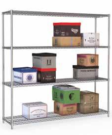 eenvoudig en snel te monteren schappen in hoogte verstelbaar verchroomd staal maximaal draaggewicht 250 kg per schap voorzien van stelpootjes gedemonteerd geleverd NSF goedgekeurd