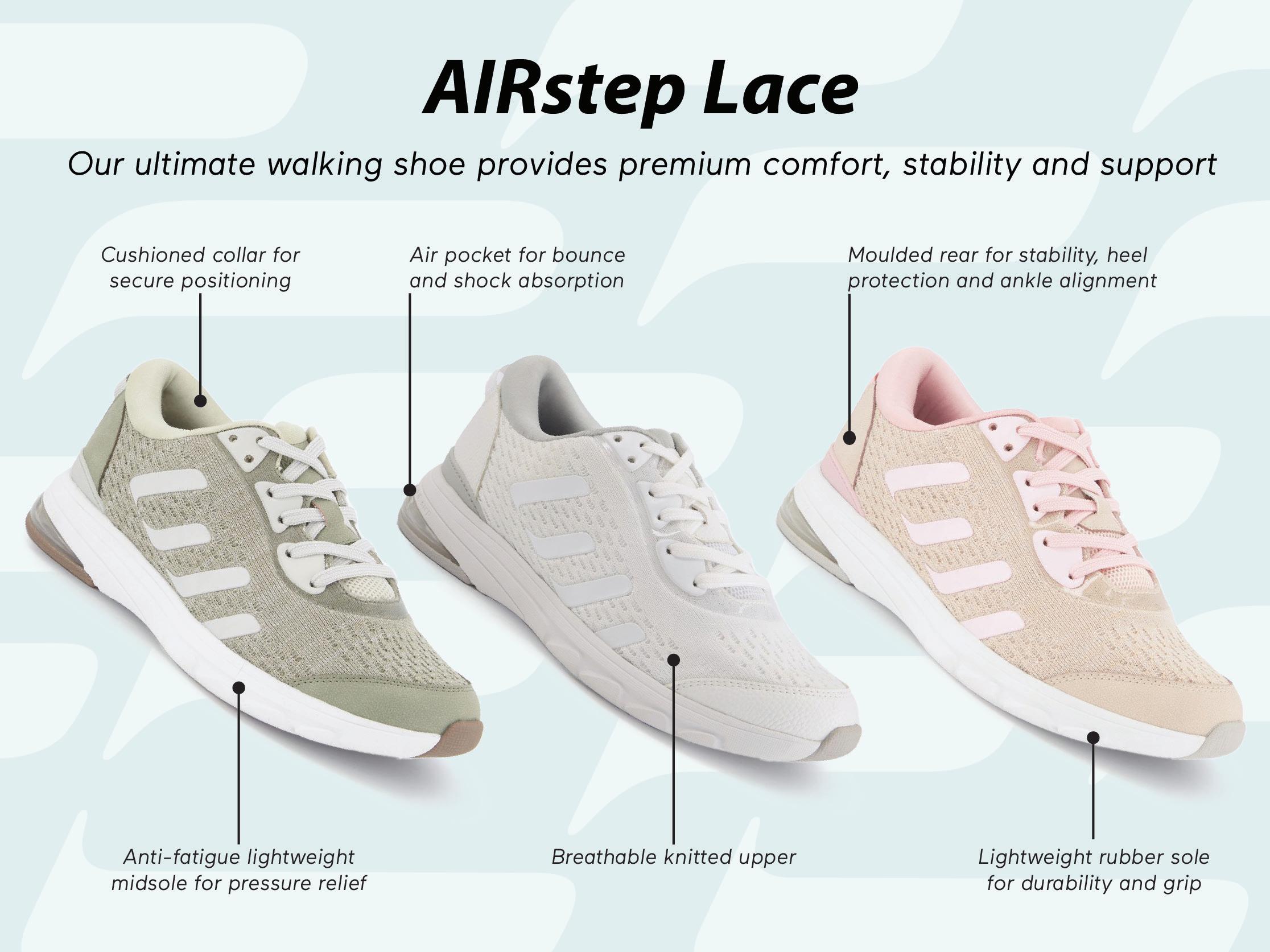 AIRSTEP LACE Khaki, White, Pink Kiss SIZE 5-11 WIDTH C+/D SuperWalk Footbed $159.95