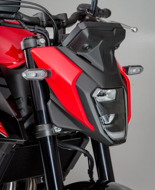 La pantalla LCD en su panel muestra una amplia variedad de información relevante, como la indicación de marcha engranada, el consumo de combustible y el voltaje de la batería, entre otros. Otra cualidad importante es su control de tracción HSTC (desconectable), cualidad poco común en su segmento. Además, su luz principal es LED.