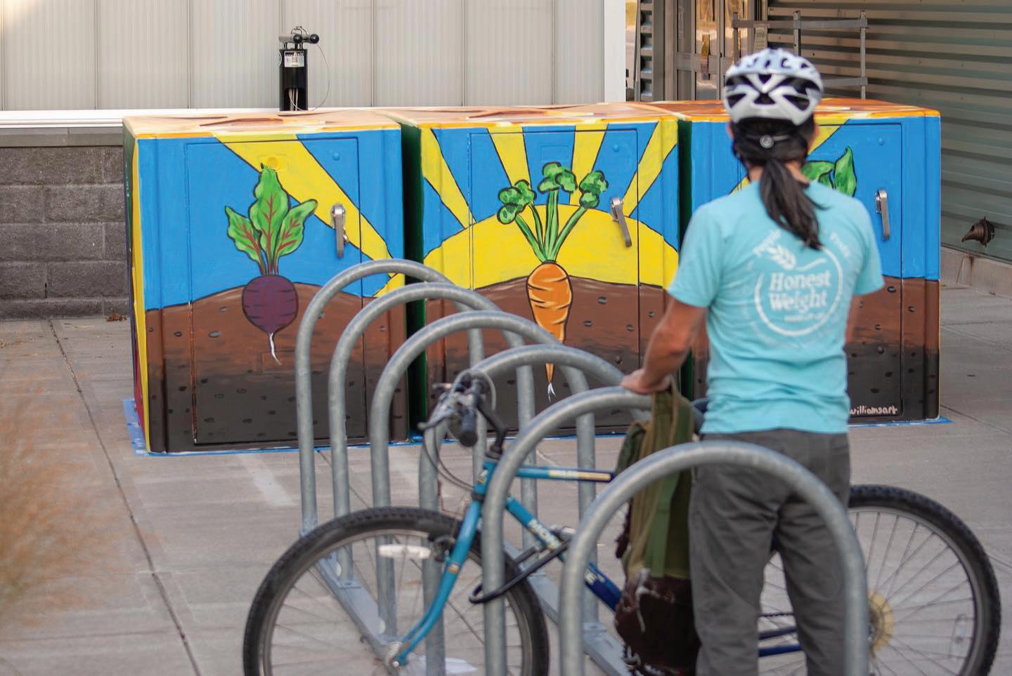 Hannah deserves a lot of credit for actually beginning the artistic renaissance at the co-op! Technically, she painted our bike lockers in 2020, but we didn't give her proper credit in last year's Annual Report. Hannah came to us through our longtime partnership with Albany Center Galler ies (shoutout to Tony) and once the co-op commu nity saw her vision come to life, putting art everywhere became a top priority! Longtime upstate NY muralist, Hannah's subject matter leans toward empow ering women in many forms, shapes, sizes, and atmospheres.