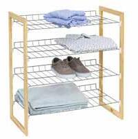 SHF-01608 | baker's rack color: chrome/natural material: steel/hardwood