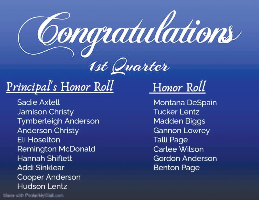Grundy Co R-5 Elementary 1st Quarter Honor Roll