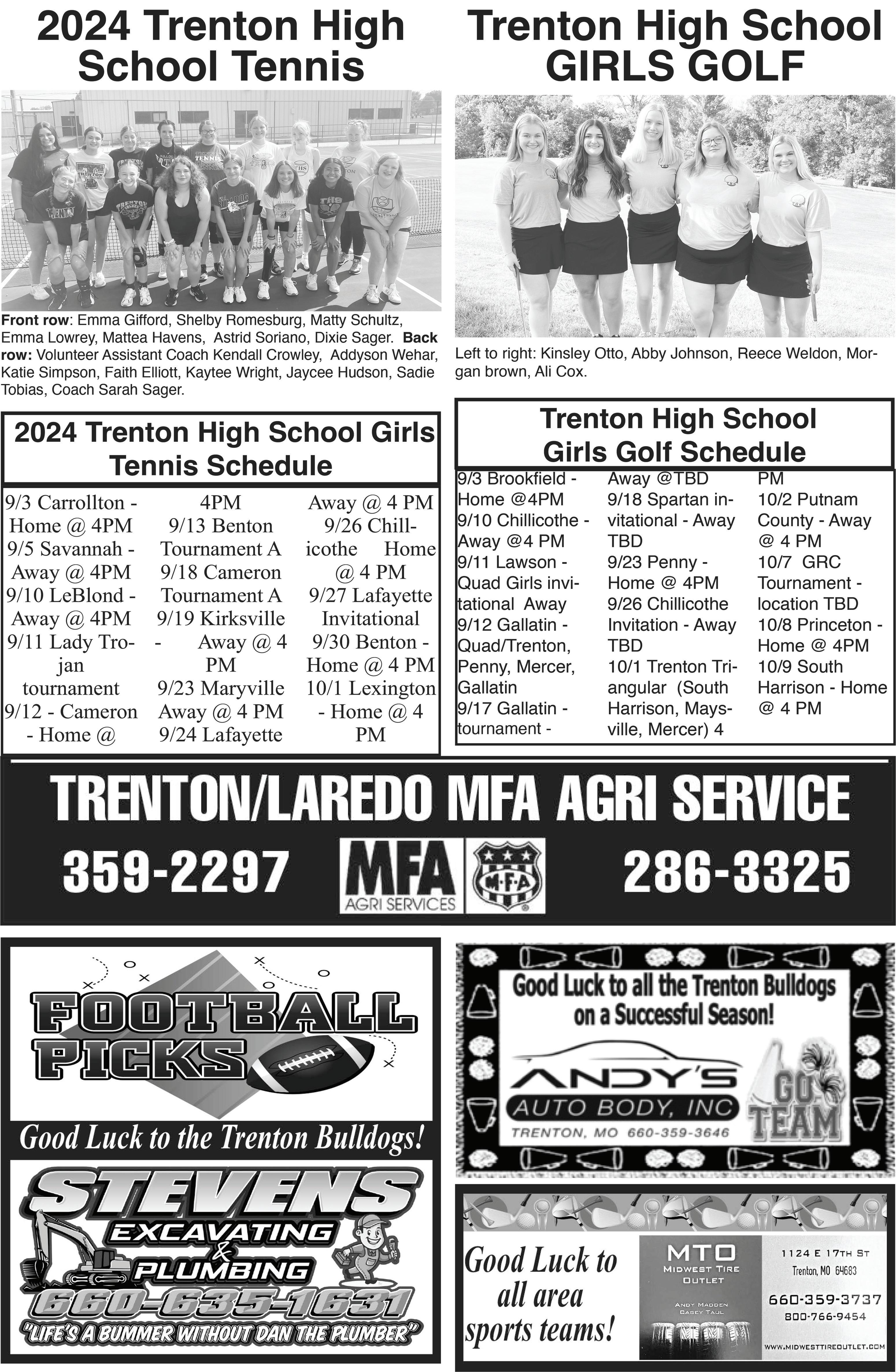 The theme this year will be will be Disco Denim. The community Pep Rally will be held at C.F. Russell on Wednesday, Sept. 25th at 7 p.m. Community businesses are encouraged to email Greg Dalrymple at gdalrymple@trentonr9.k12.mo.us if they want to participate in the parade or