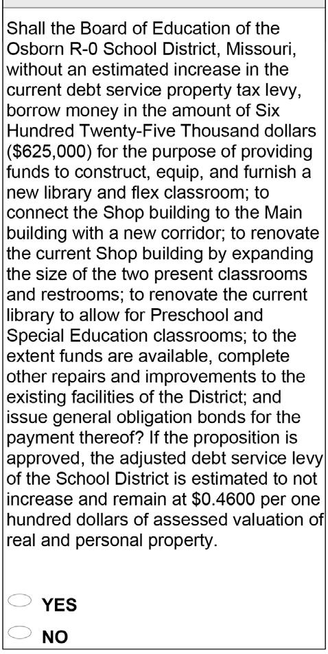 Tuesday, April 4. Clinton County, the City of Gower, the City of Plattsburg, the City of Trimble and the City of Cameron are each proposing three-percent sales tax-