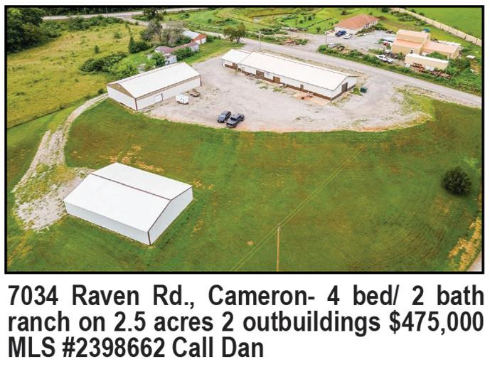THE GREEN HILLS WEEKLY PAPER, TUESDAY, JANUARY 10, 2023 PAGE 3 DAVIESS COUNTY LIVESTOCK MARKET 912 W. Grand • Gallatin, MO 64640 • Find Us On Facebook! The Barn 660-663-2177 Dave Cannon 515-442-3003 • Troy Jennings 660-373-1995 Casey Sperry 660-425-0616 • Barry Boos 816-262-3060 Check our WEBSITE for current sale information... www.DaviessCountyLivestockMarket.com CATTLE SALES WEDNESDAYS @ 11 AM BRED COW SALE ~ SAT, JAN 14 @ NOON RUSSELL LIVESTOCK MARKET 31683 US Hwy. 34, Russell, IA 50238 • Barn Phone (641) 535-6065 Weigh Cows - 9:00 am • Feeders - 11:00 am ** SPECIAL CATTLE SALE ** MOndAy, JAnuARy 16, 2023 ** SPECIAL CATTLE SALE ** MOndAy, JAnuARy 23, 2023 BARn WILL BE OPEn SundAyS 8 AM - 8 PM WATCh OuR AuCTIOn LIvE @ www. dv a u ctio n .com visit www.russelllivestockmarket.com • Barn: (641) 535-6065 Owners: Tony & Meshara Ballanger 641-777-3113 - Cell Owners: Shawn & Jana Murphy 641-777-0103 - Cell Field Rep: Justen Murphy 641-217-1235 - Cell Field Rep: Brian Mitchell 515-360-1486 - Cell Field Rep: Tim Rinehart 660-425-0991 - Cell Field Rep: Aaron McGee 641-203-3043 - Cell REAL ESTATE