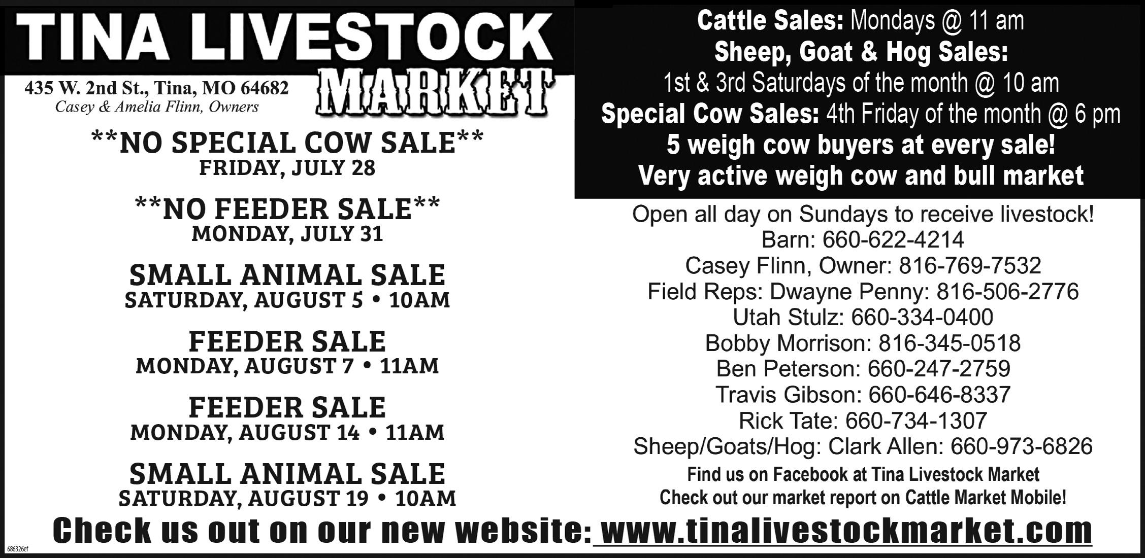 Every Tuesday Feeder Sale Starting @ 10:30 am August Horse/Tack & Small Animal Sale - Canceled!
