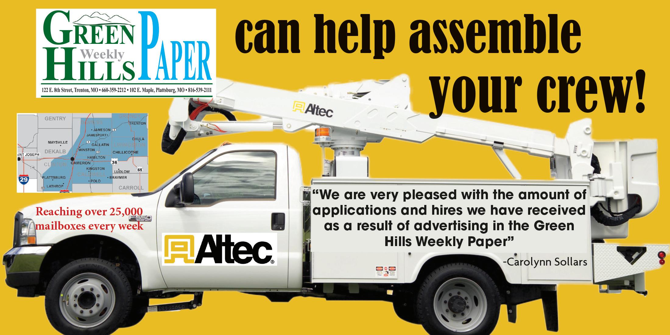 SUPERINTENDENT WANTED PWSD#2 of Daviess County has an immediate opening for Water Superintendent. Duties include managing the district's business and operations, also overseeing the water distribution system. Responsibilities: ~ Perform Missouri One Call locates ~ Assist with monthly reading of meters ~ Maintaining and repair of water distribution system, valves, meters, meter pits, and other connections ~ Maintains records and files related to daily assignments ~ Complete and submit all DNR required sampling, reporting and lab work This is a full-time position. Candidate should be over 18 years of age or older, possess a high school diploma, and MUST hold a DS-11 or higher certification from DNR. The starting salary is dependent upon qualifications. Benefits include paid health insurance, vacation, and holiday pay. To obtain an application, email dcpwsd2@windstream.net or stop by the office at 1102 South Main Street, Gallatin, MO 64640 during normal business hours M-F 8am to 4pm. Gallatin, Missouri Kirk Burkhead Ph: 816-288-2209 Fax: 660-663-9615 kirkburkhead@yahoo.com Medicare Suplement Insurance Life Insurance & Annuities Social Security Claiming Questions on Medicare?? Call for Appointment 816-288-2209 JAMESPORT GROCERY 302 South Broadway (south of 4 way stop) • Jamesport, MO 660-684-6616 • M-Sat. 7:30 am - 7:00 pm 2/$10 3/$11 3/$5 $499 $549 $199 $379$210 $310$399 $210 3/$10 $599 $699 $599 $249$499 $189 4/$6 $599 $189 $419 $149 $329 $129 $699 $499 $119 $159