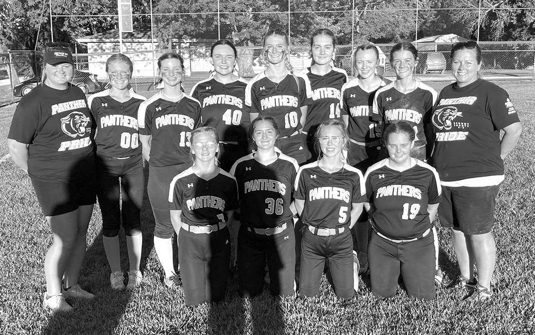 (left to right) Front row: Hannah Meighen, bat boy, Grace Kelly, Faith Siemer, Emma Walkup. Back row: Celia Stiles, Maddy Tipton, Kadence Stockman, Kelsey Goodin, Addeline Henke, Macey Lewis, Audrey Kelly, Riley Clark, Addison Wyatt, Evan Boxley.
