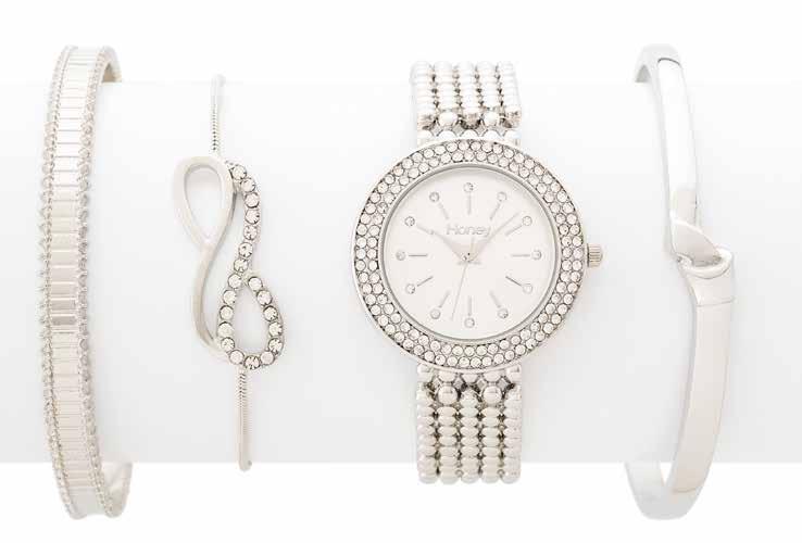 One rhodium plated bracelet. Clear glass crystal detail. Closes 19cm to 22cm. Comes in gift box.