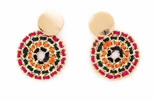 24ct gold plated earring. Black, orange, forest green and orchid woven cotton detail. 45mm drop.
