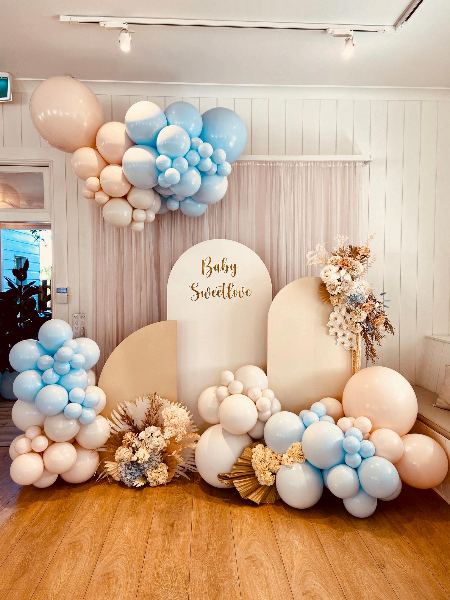 Approx 5 metres in your chosen colour scheme. Includes double layered custom colours and chrome balloons.