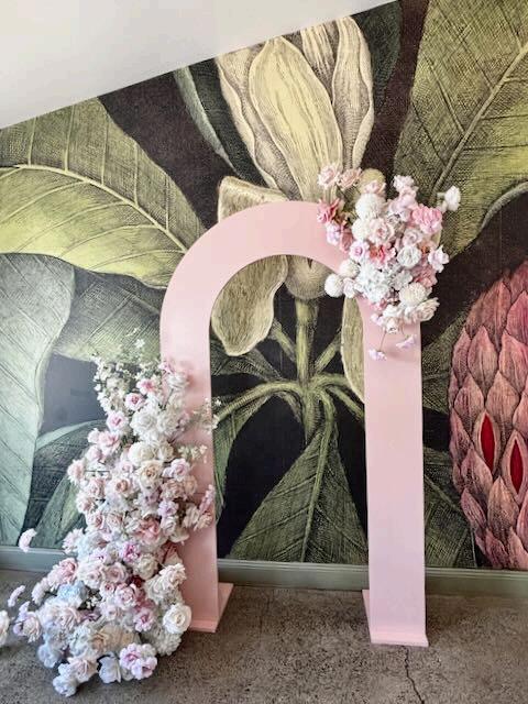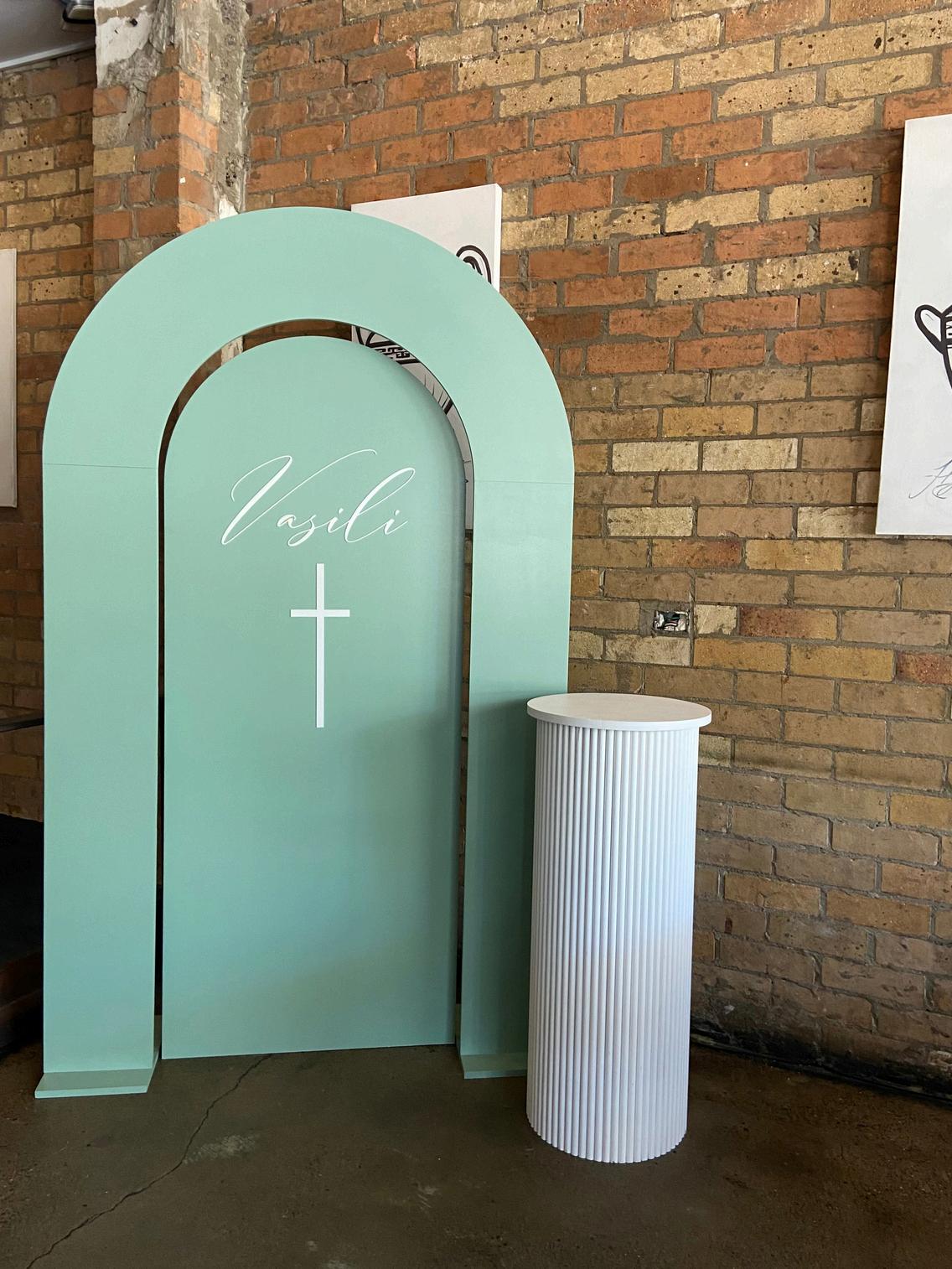 ARCO ARCH BACKDROP HIRE WITH CUSTOM DECAL