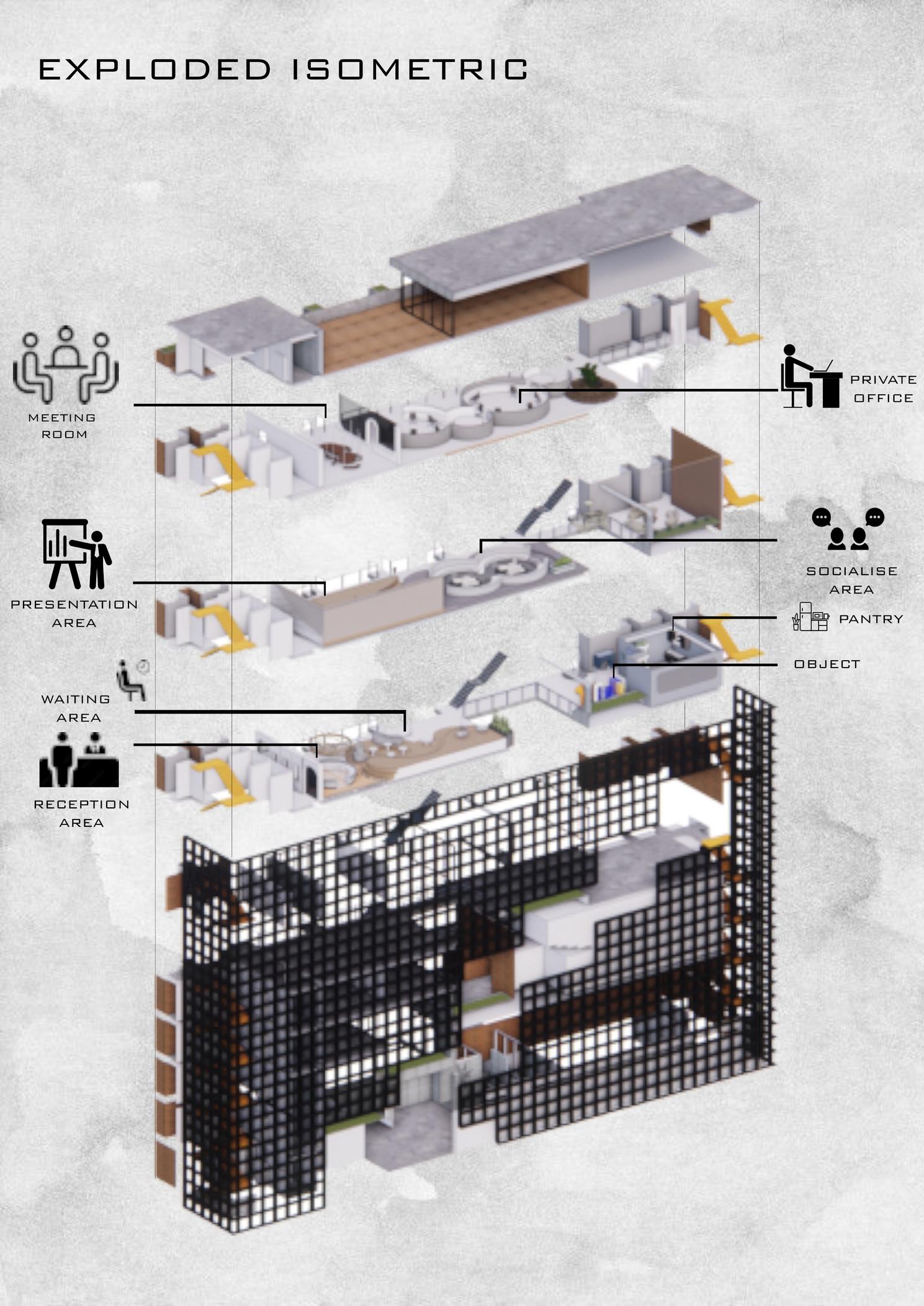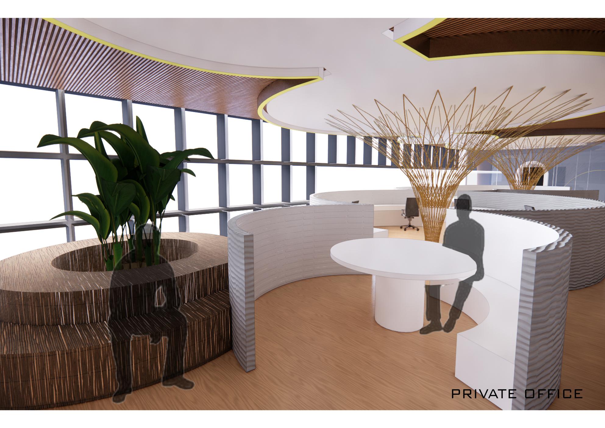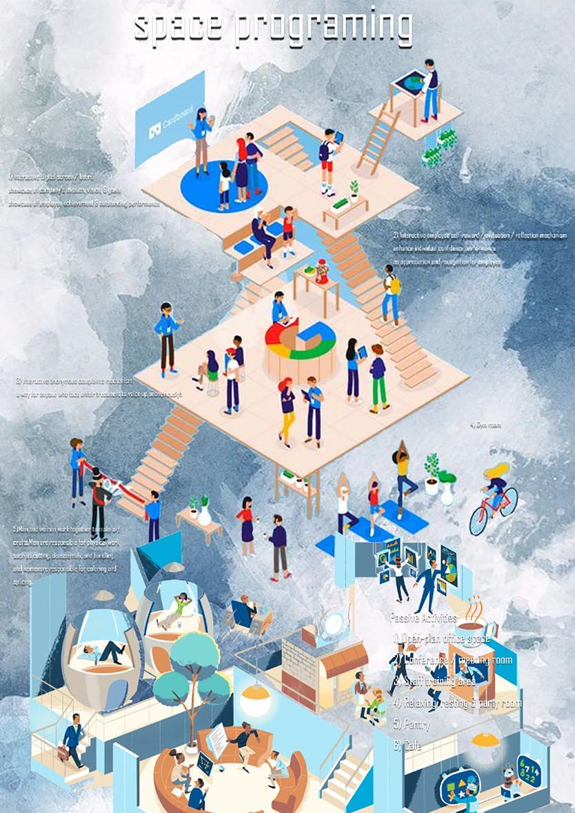 We are required to design an appealing and breathing work space individually at the office level chosen related to the SDGs assigned. Students are to create an engaging workspace that lead to transformation and growth, shift the culture towards engagement and productivity as well as integrating a sense of community will remain important to the future workplace, especially as advancements in technology encourage people to work remotely and become more isolated. Rethinking the power of culture and space for insightful experience, a space that boost employee engagement and vitally by the creative use of space, flow with powerful effect on the human psyche. Digital technologies are transforming not only on the work people do, but also the ways of the workspaces are designed, built and operated. But the very essence of the workplace ― human interaction and collaboration, remains as necessary as ever. The attention of post pandemic and new norm is the main focus in the systems of the intelligence office for each of the spaces assigned that navigated from the issue raised of the assigned SDG.