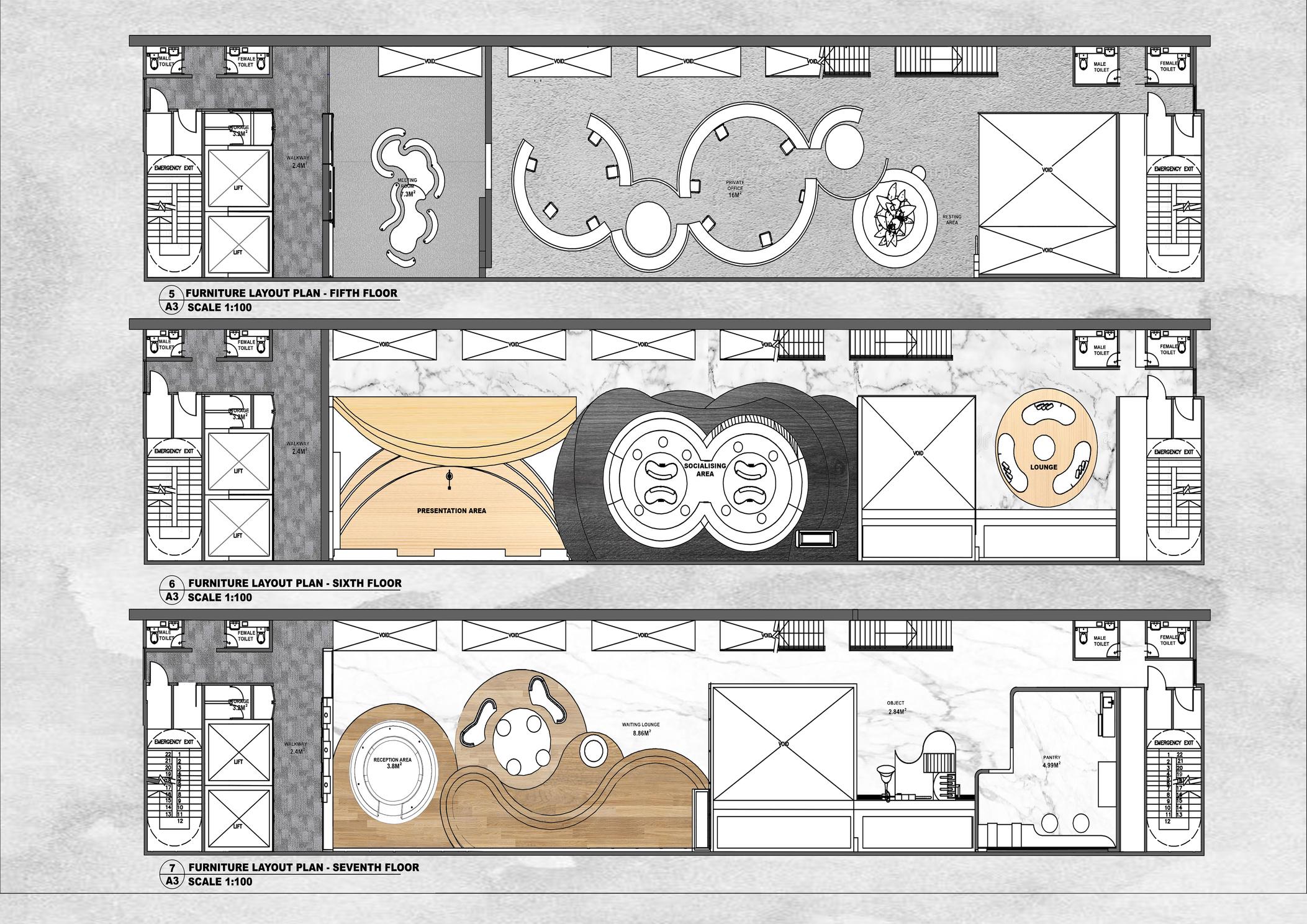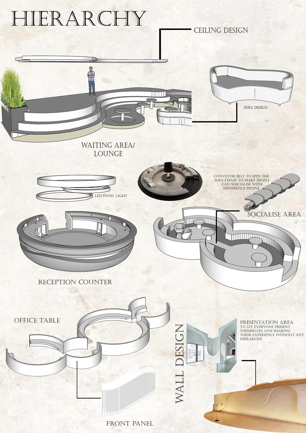 This modules is directed into design process, programming, analytical critical thinking with the considerations of the environment influences, behavioural studies and end user’s needs and design resolution. Distinctively the progression would be enhanced with having effective graphical communication and technical skill. More commercial project tasks are introduced to relate to the direction of the industry that manipulates various specialised details of materiality and specifications. The module investigates the attraction of workspace value to their specific markets through interior design, which accurately reflects brand values and corporate identity.