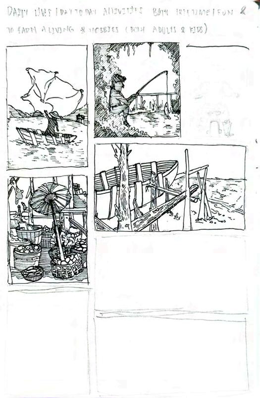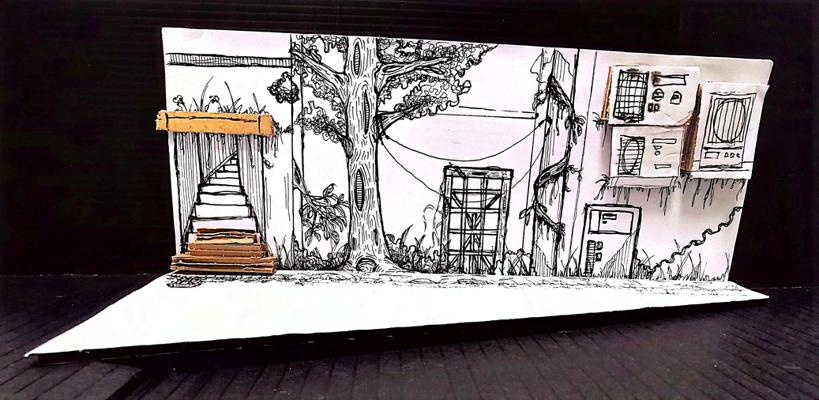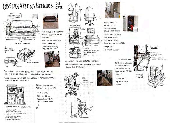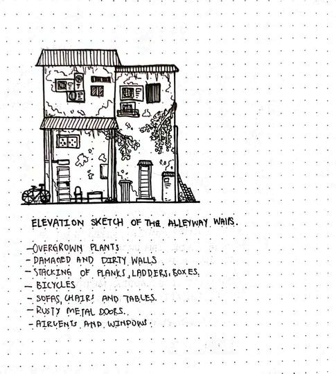 For this project, I visited the site frequently to sketch and Little India. The observation and sketches were then transl idea of smell of the alley and